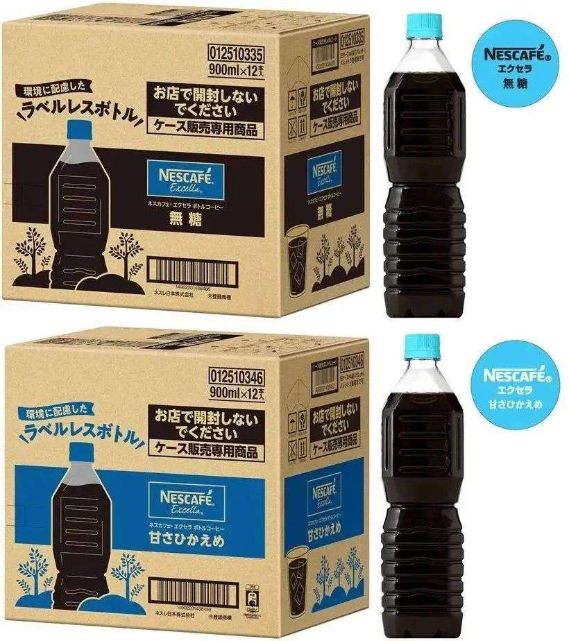 差不多同一时候,雀巢在日本推出了无标签 PET 瓶咖啡,以每箱 12 瓶的形式销售,成分名称等标识被印制在箱体。
