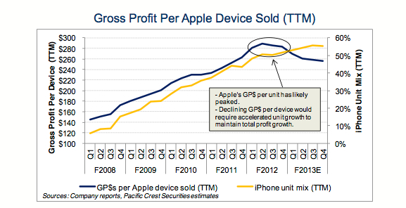 iPhone 5的成本正在吞噬苹果的毛利率,单台手机利润已见顶