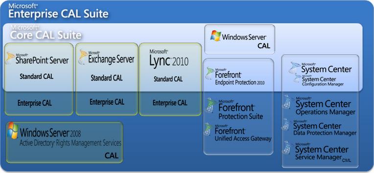 两种收费政策,基于用户的授权(User CAL)和基于设备的授权(Device CAL)。User CAL是指按照用户数量来收费,而不管这些用户在多少台设备上使用,这可以让员工可以利用多设备在家、办公室或者其它地方工作,但不会收取额外的费用。