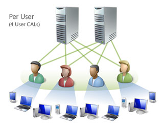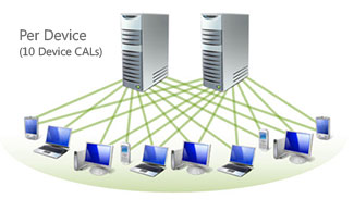 而Device CAL则是相反,它按照设备数量来收费,而不管多少人使用这些设备。这种政策很适用于一部设备在很多员工中使用的公司,如仓库或者厂房。