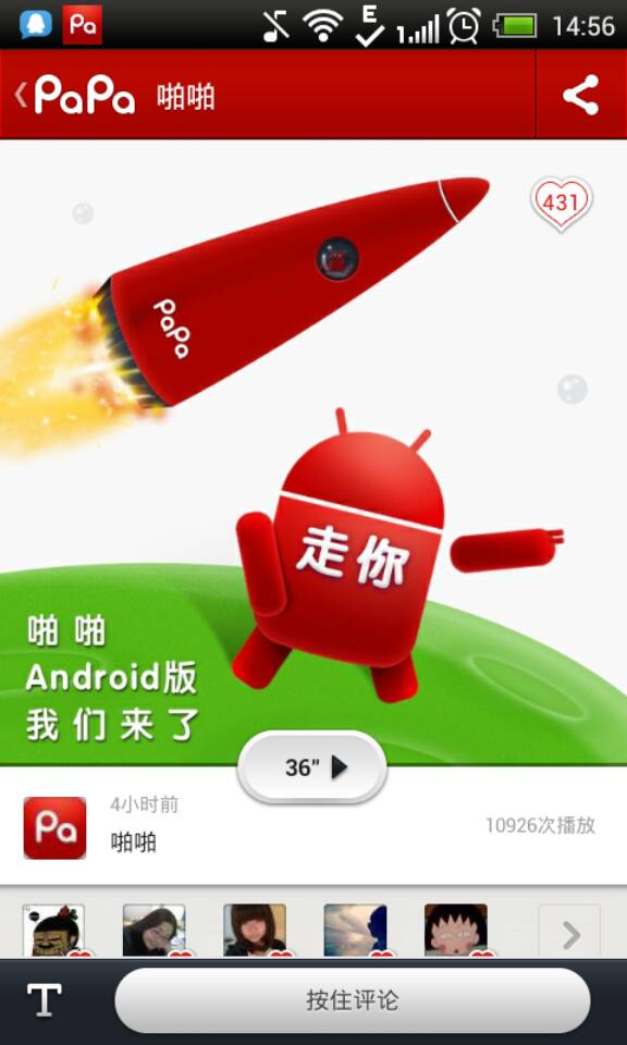官方博客今天宣布,正式上线 Android 版“啪啪”。