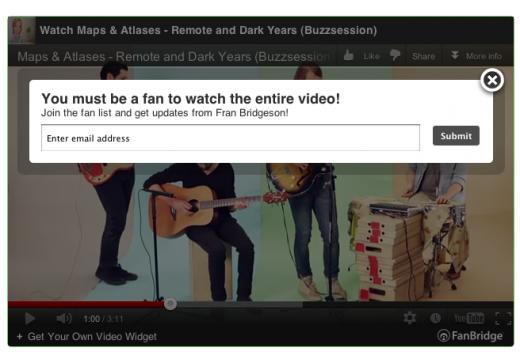 粉丝关系管理公司FanBridge推出YouTube营销工具,粉丝提交邮件后才能继续观看视频