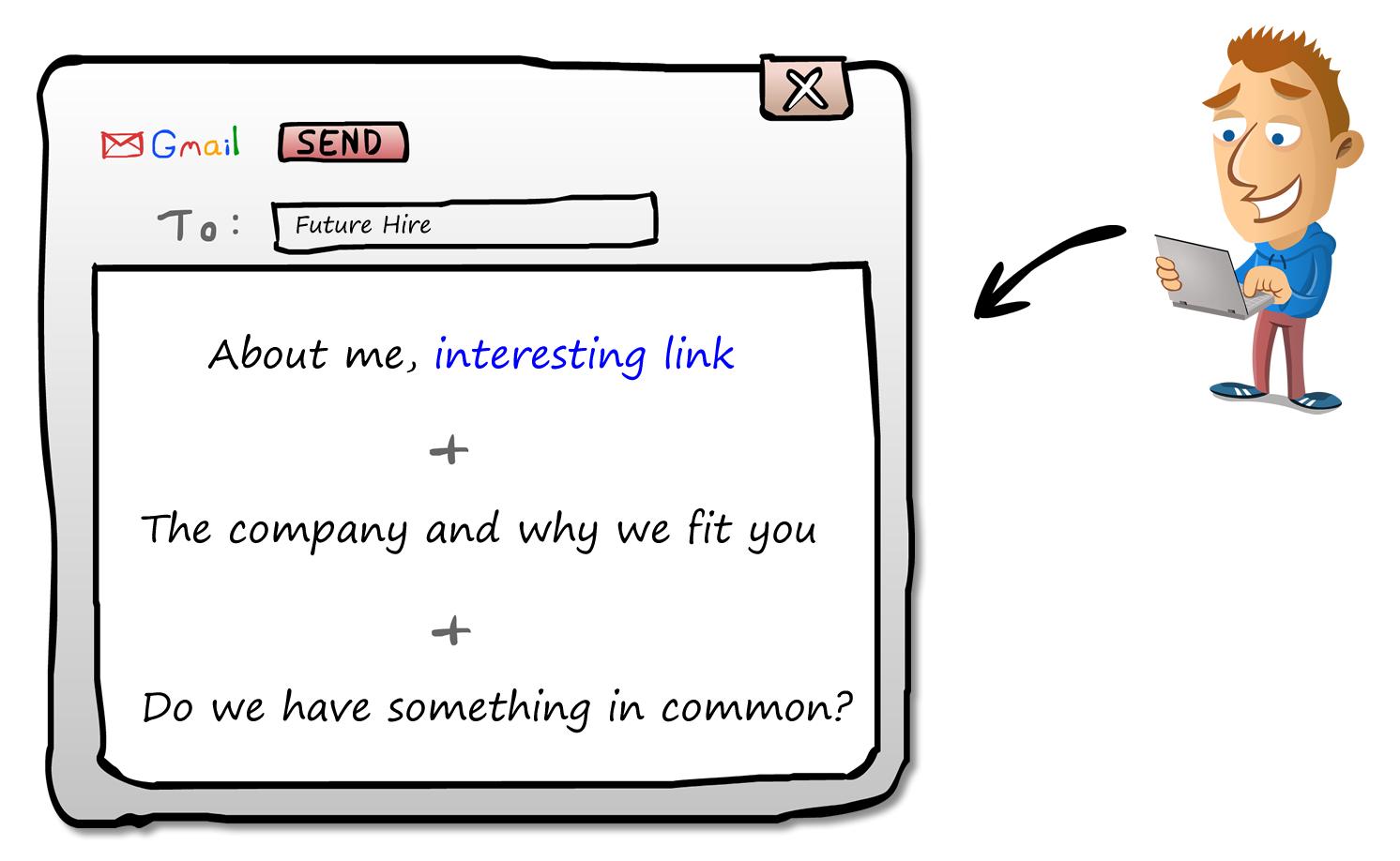 *在介绍自己的时候链接到你自己的个人主页(个人博客、关于你的采访、视频等等)。一旦候选人能在邮件背后看到一张人脸,他们就更有可能给出一个正面回复。