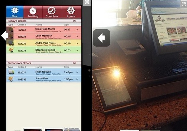 Teburu的解决方案为餐馆提供了一揽子服务,包括一个7英寸的Android平板和一个可以被装到墙上或pos机上面的安装系统。这款平板会运行Teburu自己的软件,并直接接入餐馆自己的在线和移动订餐系统。一旦用户下单,平板就能在第一时间收到订单。而且,Teburu既可以将在线预订的这部分功能直接整合到餐馆的已有网站,也可以帮他们专门创建一个订餐的新页面。