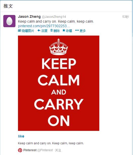 Kelly Lieberman首先注意到了Pinterest增加了对Twitter Cards的支持,通过Pinterest分享图片到Twitter以后,用户可点击“查看图片”直接在Twitter里看到图片内容(而无需像Instagram照片那样需要跳转到Instagram自己的网站才能正常查看)。图片在Twitter里的地位越来越重要,而以瀑布流图片闻名的Pinterest则是在YouTube之外的最大的视觉社区,它们称得上是“天作之合”,Pinterest对Twitter Cards的支持也是对Twitter新客户端的重要补充。