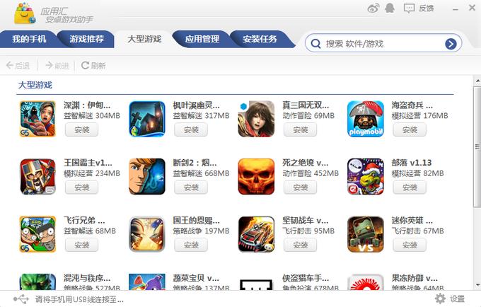 应用汇今天在创新工场正式发布了一款PC端的安卓游戏助手,旨在打通游戏开发者与游戏玩家之间的发现机制问题,它可以实现大型游戏一键安装。