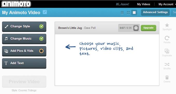 需要注意的是,免费用户只能生成 30 秒的视频,用户支付 5 美元 / 月(可中断)的费用,生成的视频就可以是不限长度的了。此外,Animoto 视频模版中被归为 Pro Exclusive 的部分是只有 Animoto Pro 的用户才能使用的,该计划需支付 39 美元。