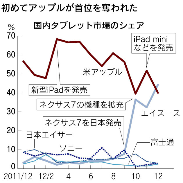 调查称Nexus 7在日本市场份额达44.4%,首超iPad