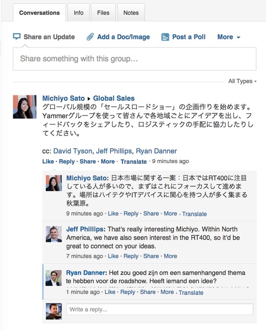 微软旗下Yammer宣布将整合微软的翻译工具,实现跨语言即时翻译