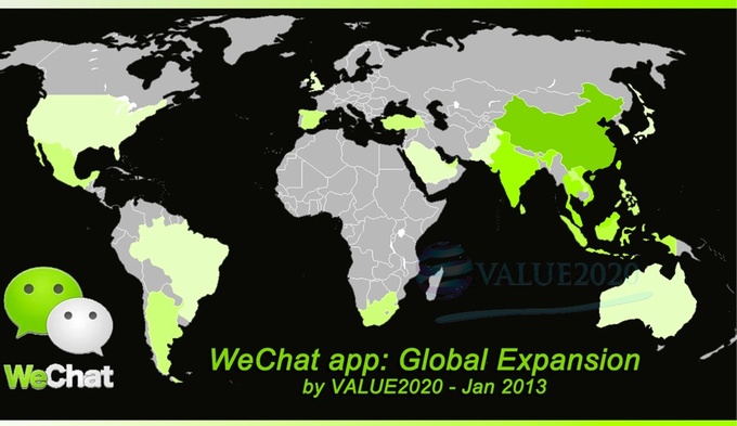上图是微信在全球的分布图,从图上看,微信几乎覆盖了整个东南亚地区和印度地区。尤其是印度,已经成为微信的第二大市场。除了亚洲地区,微信已经普及到了北美、南美以及拉美地区,甚至包括南非、中东等地区都有微信用户。