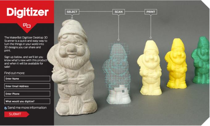 此前我们曾报道过MakerBot在纽约开的线下体验店,用户可以在店内直接扫描自己的头部,然后打印出一个模型,所用的技术跟Digitizer类似,不过没有Digitizer那么个人化,可能类似于大型主机和个人PC的关系。