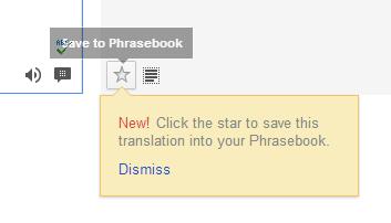 新的常用语手册是默认启动的,您可以通过Google Translate右上角小书样的图标访问它,按翻译框下方的星形图标就可以保存一个短语。