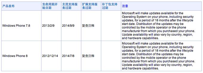 据Engadget消息,今天微软在网站上公布的支持文档显示,微软将在2014年下半年结束对Windows Phone 8和Windows Phone 7.8的支持,对前者的技术支持会在2014年7月结束,后者为2014年9月。