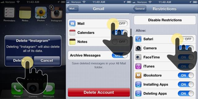 可能有人会说,我可以轻易的撤销这一切——删掉的应用可以重新安装,账号删除也可以重新添加,Safari限制也可以随时解除。