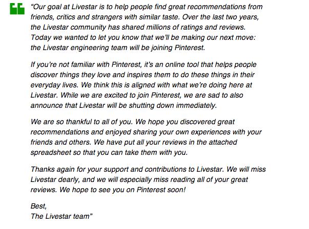 今天,有消息称Pinterest已对点评应用 Livestar 进行了人才收购,收购条款暂时不详。Livestar 的三人工程师团队会整体加入Pinterest,Livestar的服务也将很快关闭。