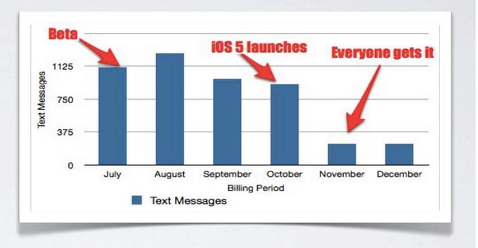 图一,iMessage跟随iOS5.0上市后,北美的短信运营服务遭受了毁灭性打击。