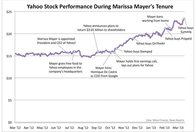 一图看Mayer担任雅虎CEO的8个月之旅:8个月后,Mayer采取的系列举措让雅虎股价在去年基础上已上涨50%