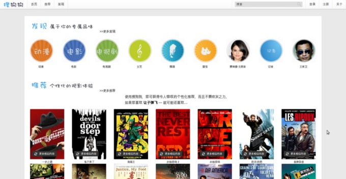 新用户可以直接用自己的社交媒体账号登陆搜狗狗网,系统会针对用户在社交媒体上的关系、行为等数据进行挖掘和分析,识别用户的口味,然后做到符合用户预期的个性化推荐,用户在搜狗狗网上的评分、观看、收藏、分享等行为也会形成数据沉淀,帮助系统更准确进行预测;如果用户想描述自己想看什么,那用户可以使用搜狗狗基于自然语义的推荐;接着这些影片可以依托每一个用户的社交关系网络进行快速的传播。