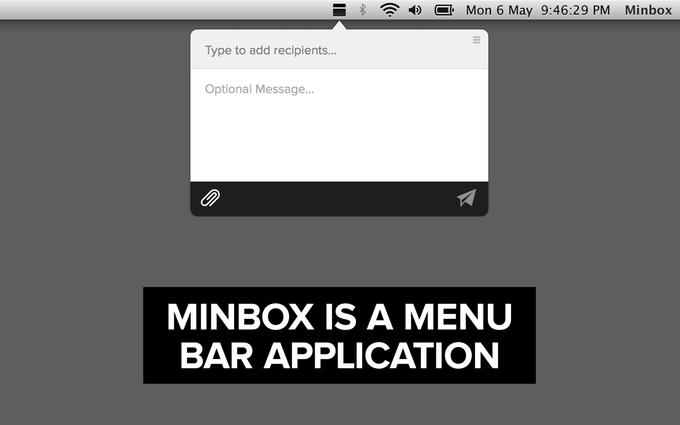 Minbox目前只有Mac版本的客户端。在安装后,用户可以通过简单的拖曳文件到状态栏上的Minbox图标或者右击来直接分享文件。