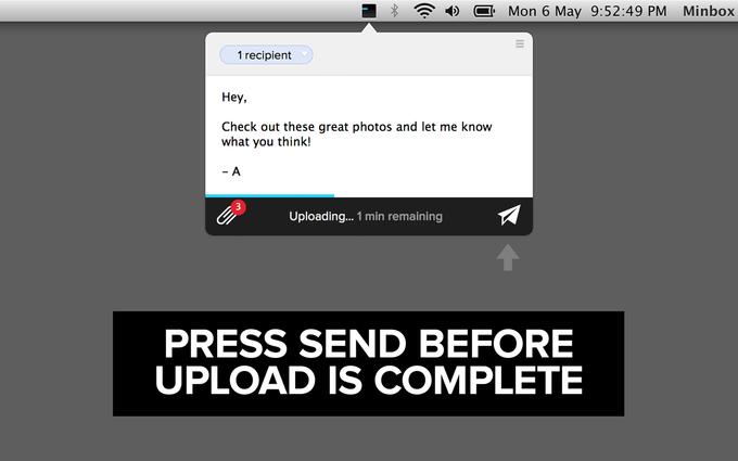 文件分享服务Minbox上线,在文件完全上传到云端前就会向接收者发送通知,造成“瞬间分享”的印象