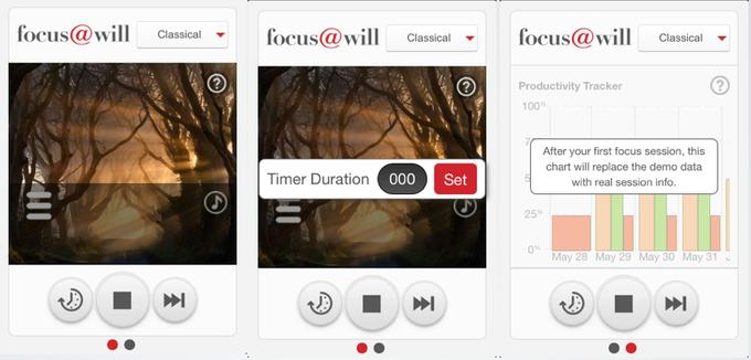 这种通过声音来营造氛围的应用,我们之前已经介绍过了比如主打听雨的Raining.fm 和 Rainy Mood,以及给你营造一种仿佛置身咖啡馆中的Coffitivity。而focus@will的区别在于,它推荐的都是纯音乐,而达到设定时间之后,它还有相应的反馈机制(如下图)。