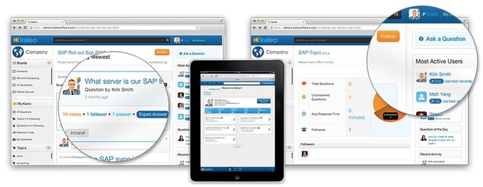 Kaleo帮助企业建立企业知识库,员工可以在库中搜索处理问题的流程和方法。首先员工把问题和答案输入到系统,之后这些信息将被加注标签和存储。Kaleo的SaaS app是一套整体解决方案,可以适用所有的企业,不需要做个性化的调整。Kaleo的知名客户包括Dell、Ventura Foods和HRCI(HR Certification Institute)。