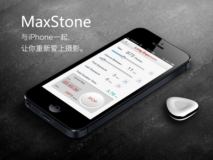 MaxStone是一个硬币大小(27 x 26 x 8.8mm)的智能相机遥控器,可以让iPhone遥控相机,实现无线快门,具备延时摄影和长时间曝光等专业模式,同时兼具蓝牙4.0防丢器功能。MaxStone电池寿命超过300天,还具有防水功能。可拓展功能的多重App持续更新中。