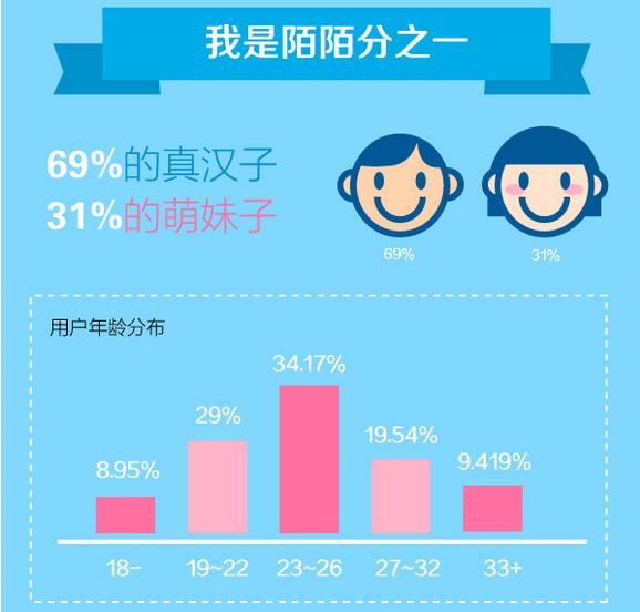 今天陌陌发布了一张用户信息图,想让全世界的看客们都看明白究竟是哪些人活跃在这神奇的产品上。而当大家都在研究询问图上的“国粹”何意时,同事镜宇却一鸣惊人笑死人不偿命地来了一句:男女比例二比一,一对情侣一对基。唉,果然五千万用户就是信息量太大,你们还是自己看图感受下吧。