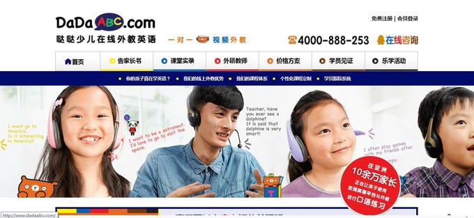 DaDaABC.COM是针对6-17岁青少年提供一对一外教实时在线英语教育的网站,父母或孩子可随时预约一对一外教英语课程,利用每天碎片时间,就可方便的锻炼英语口语。
