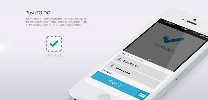 PushTO.DO以推送待办事项为主要功能的TO DO APP。PUSHTO.DO让交代你办事的人,把备忘推送给你,收到备忘提醒后,到时间,闹铃准时响起。PUSHTO.DO在接下来的版本中,还会加入更加有特色的功能,如阅后即焚的任务推送、在指定时间或地点才能打开的任务等。
