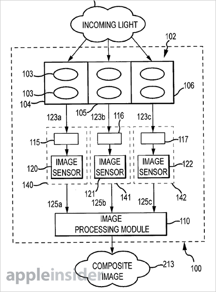 苹果获得新的相机技术专利,为移动设备的相机配备三个不同的感应器及三个不同的镜头