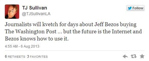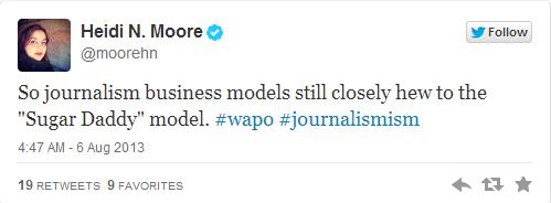 也就是说,Jeff Bezos不仅拥有资金资源,同时还有足够对社交网络的洞见得以带领华盛顿邮报实现重大的变革——如果他有此意愿的话,报业将会数字版图中获得新的地位。倘若能够目睹Bezos 之辈对新闻业进行大刀阔斧改革的话,接下来几年的新闻事业将会呈现大不一样的光景。