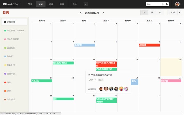 Worktile是一款适合小团队的协同工具,融合了团队协同中核心的任务、讨论、文档、文件、日历、邮件6个元素,但核心工作场景围绕着团队、项目、任务展开,产品设计采用极简风格,目前已经支持主流的浏览器,计划近期推出移动端产品。
