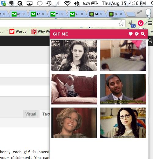 因为同样是通过点击右键保存,所以Gif.me 的方便之处并非在保存,而是在管理,以及分享上,任何时候,只需在Chrome 中点开它,你能随时查看到保存的Gif 文件,并将它们分享出去。