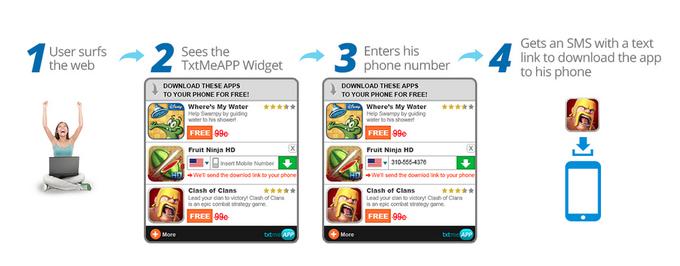 用户只需输入手机号,下载链接便会短信发送至手机,TxtMeApp 要帮开发者提升从桌面端到手机端的转化率