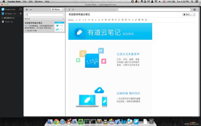 有道云笔记的Mac版与Windows版一样,支持包括图文混排在内的各类型笔记的创建,并可添加多种格式的附件。笔记可以同步云端,支持在网页、Windows、移动端等多平台下编辑。云端存储空间为2G,基本满足多数用户使用需求。