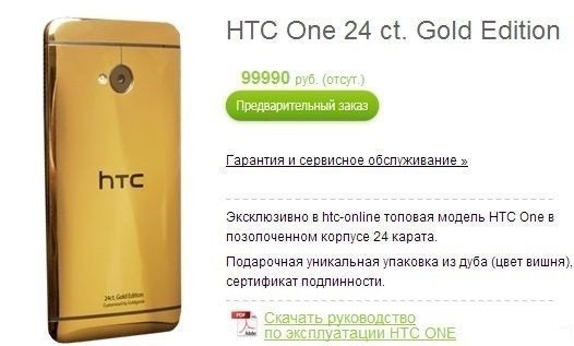 内什么,4298万美金可以买多少部土豪金版的iPhone 5s啊!如果还嫌土豪金版的iPhone 5s不够土豪,没关系,黄金版的HTC One绝对可以满足土豪们的需求。HTC在俄罗斯推出了这款黄金版HTC One 24 ct. Gold Edition。这款黄金版的HTC One机身背面镀有24K纯金,售价更是高达99990俄罗斯卢布,约合人民币19000元。不仅如此,为了体现低调奢华有内涵的气质,黄金版HTC One还会使用一个精美的橡木盒包装,并将附上真品证书,绝对高端大气上档次。