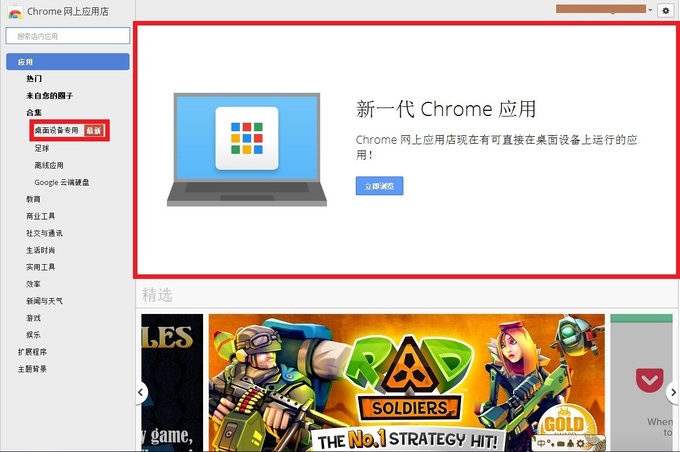 ps:上图的红框是我加的。很明显Google非常欣赏自己的新产品,把”桌面设备专用“加红,把介绍放在了头版上:可以直接在桌面运行。用一下你就知道,这玩意就是百度炒过的轻应用。