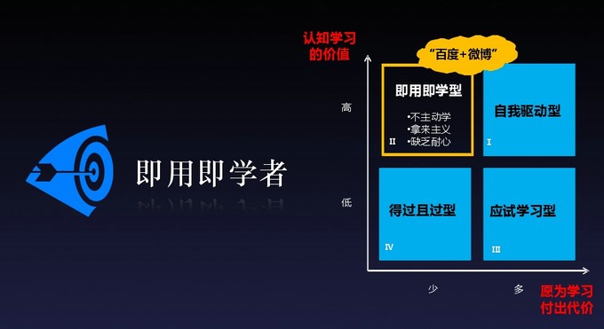 在陈澄波看来,企业培训业转型的动机主要来自两个方面:一是近年来各行业经济形势不太乐观,降本增效成为各企业的战略关键词,培训部门的工作也渐受影响。二是员工学习习惯的转变,由于信息爆炸和工作节奏加快,大多数员工演变成“即用即学者”——认可学习的价值,但不愿意为学习主动付出代价,只在问题发生时寻求最直接可用的答案。愿意接受培训内容的核心场景也变为“无聊时”和“即用时”。