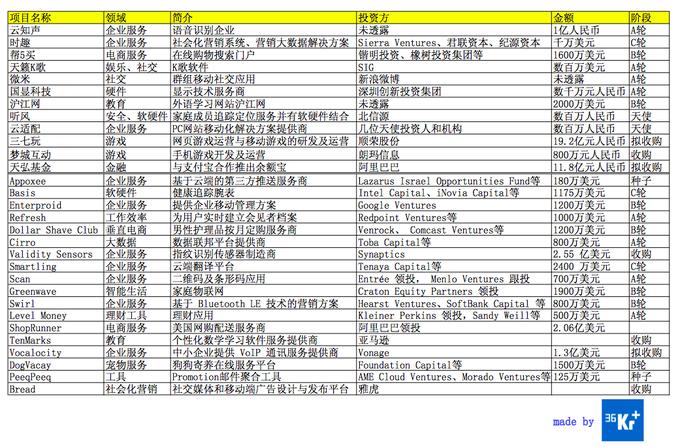 2.相比较上上周而言,国内投融资案例明显增多,比如云知声、时趣、天籁K歌等纷纷获得VC投资;此外阿里巴巴、新浪等大公司也出现在了投资方行列进行业务层面的战略布局。比如阿里巴巴对美国网购配送服务商ShopRunner的领投以及对天弘基金的收购,都是为了其能够更好的探索国际先进的电商配送服务模式以及互联网金融创新。