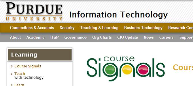 在充满讲座式课程的大学中,很难看出来到底有哪些学生心不在焉。在过去的几年里,普渡大学正在尝试通过一种数据算法,来帮他们找出在校园里有哪些学生正面临退学的风险,或者是有哪些课程需要更多的老师。学校的管理者们管这个系统叫“student success algorithm(成功学生算法)”,它的官方名称叫Course Signals——假如这套系统可以成功运行的话,就有可能会改变现代大学的运作方式 。