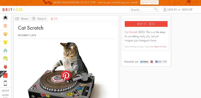 Brit + Co.网站风格上酷似Pinterest,排版布局也保持了明显的媒体风格,产品都被整理在不同的专题之下。从受众群体上看也跟Pinterest有很大的重合性——家庭主妇和爱美女性。