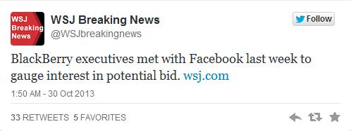Facebook也对黑莓感兴趣?据华尔街日报消息,上周,黑莓安排代表至加州与Facebook不知名高管会面,讨论收购事宜。具体Facebook有“几分真心”还很难揣测,不知Mark Zuckerberg及其公司是否真要参与竞标。Mark曾表示过,他真地很想Facebook出现在尽可能多的手机上。但年初的所谓“Facebook手机”(搭载FB Home 的HTC First)可说令其大受挫折。