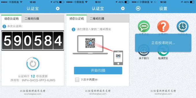 认证宝则是一款基于时间同步技术+设备指纹的动态密码产品,该产品希望在安全和体验两方面取代传统的“账号+密码”验证。在认证宝的合作网站和应用内,用户可以基于一款App,通过输入动态密码、二维码扫码(体验上与微信网页版的登陆方式类似)的方式进行登录、支付等操作,而不必记忆各种复杂的账号密码。
