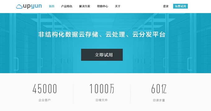 又拍云是国内比较知名的云存储和CDN服务商,主要提供非结构化数据的云端存储、处理和分发,产品特点一是提供比较完善的图片存储方案(支持图片尺寸的云端适配、多种防盗链规则、三重备份等),二是将云存储、CDN作为整体提供,用户开通云存储可自动获得CDN加速。现在又拍云已将CDN剥离出来成为独立产品“云分发”,用户不必再向又拍云服务器迁移数据也可使用其CDN服务。