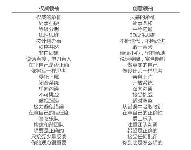 创意领袖 vs. 权威领袖:一张表告诉你它们的区别