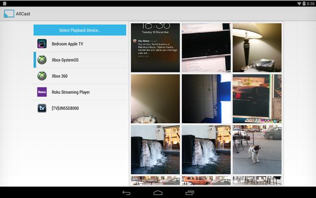 在Google发布Chromecast之后,Koushik Dutta就发布了应用AllCast,跟Google的电视棒配合使用,它允许Android用户在电视上播放手机中相册、Dropbox、Google Drive中的内容。