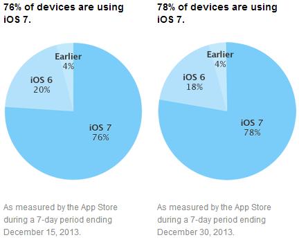 iOS 7装机率上升至78%,从iOS 6那里夺得了2%