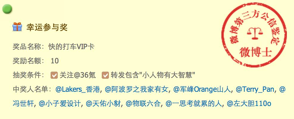 3、快的打车10个 (1000元/张)本奖品由快的打车 赞助