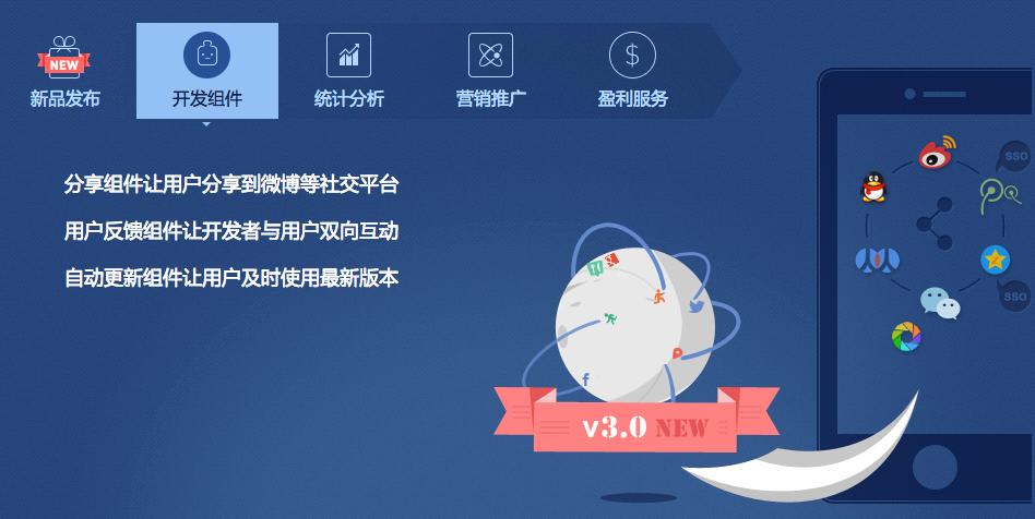 临近春节,在各种APP都推出春节特别款的时候,友盟也升级了自家的“社会化分享组件”,在之前等社交平台的基础上,新版组件增加了分享到易信、来往平台。另外据友盟透露,前段QQ空间废弃add_share接口,不允许开发者静默分享。而新版的分享组件已经解决了这个问题,成为首家支持QQ空间的第三方非静默分享。